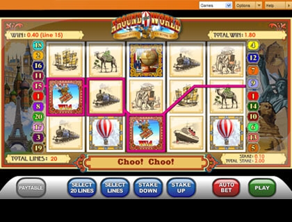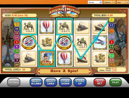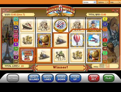Разработала и запустила в онлайн казино игровой аппарат Around the World организация с мировым именем Cryptologic. Загадочные места, знаменитые памятки архитектуры всего мира собраны на игровом поле игрового автомата.