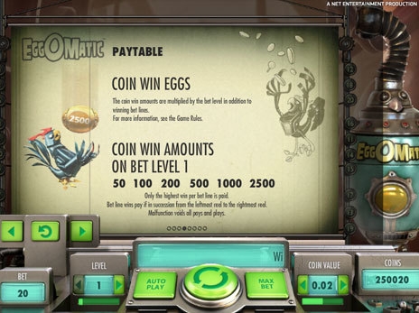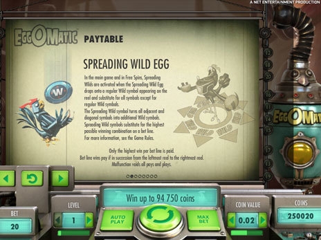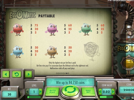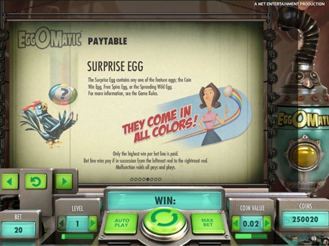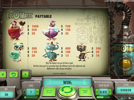 Выпустила игровой аппарат EggOMatic компания NetEnt, игровые платформы которой отличаются щедрыми выплатами, высокими множителями и др.