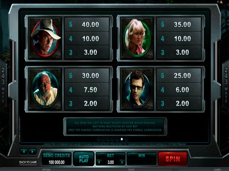 243 варианта составления призовых выплат увеличивает шансы на победу игрока. Они являются гораздо эффективнее, нежели активация 30 игровых полос. В этом плане автомату Jurassic Park уступают такие игровые платформы Book of Ra, Diamond Trio, Gladiator, The Ming Dynasty и др.