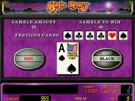 После каждого удачного спина игроку в Magic Money предлагается сыграть в игру на удвоение. Если геймер соглашается, то начинается риск игра, где нужно угадать цвет демонстрируемой карты. Угадал – удвоил выигрыш, не угадал – потерял выигрыш за последний раунд.