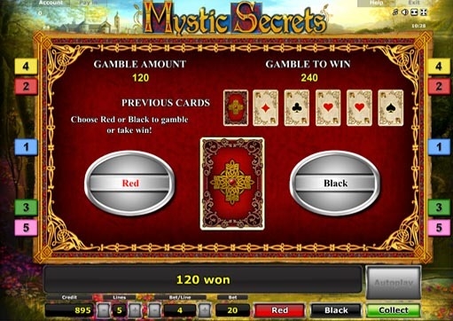 Рискованный раунд запускается после каждого удачного спина. Перед игроком появляется карта, расцветку которой необходимо угадать. Чтобы удвоить выигрыш, клиент пользуется магией и знаниями, полученными от алхимика. В удачном случае выигрышная денежная сумма удваивается. Выигрыш от рискованной игры или от удачного спина автоматически зачисляются на игровой кредит.