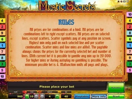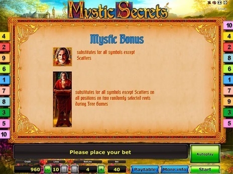 Разработка игрового автомата Mystic Secrets принадлежит австрийской компании Novomatic. Видео слот наделен интересной графикой и приятным интерфейсом. Дополнительные игровые функции приносят данному автомату наивысшую популярность.