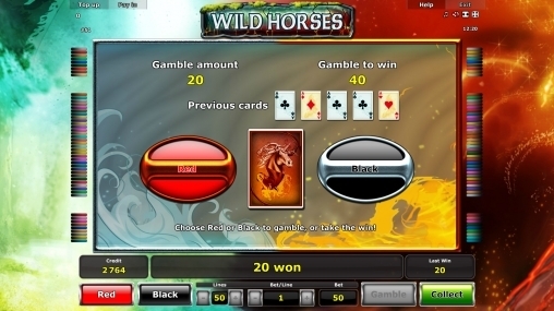 Доступ к бесплатным вращениям в игровом аппарате Wild Horses открывается только после выигрыша в бонусном раунде, когда игроку волей случая попадается карта с изображением коня.